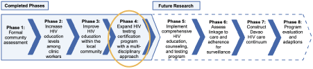 This study is phase four of eight in the collaborative research plan to build the continuum of care in Davao as seen in figure 4. Future phases include expanding access to testing, linking patients to care, monitoring adherence to ART, and evaluating community viral loads.