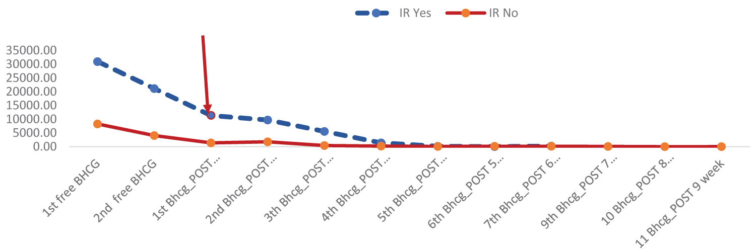 Figure 1: BHCG changes before and after IR among female patients with ectopic pregnancy uterine embolization intervention.