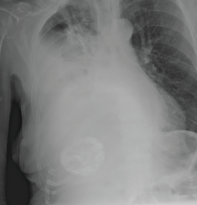 Figure 2: Hydropneumothorax clearly seen after removal of the nasogastric tube.