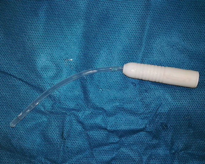 Figure 2: The 12Fr hydrophilic single-use catheter that was used for intermittent catheterization, after retrieval under cystoscopic direct vision.