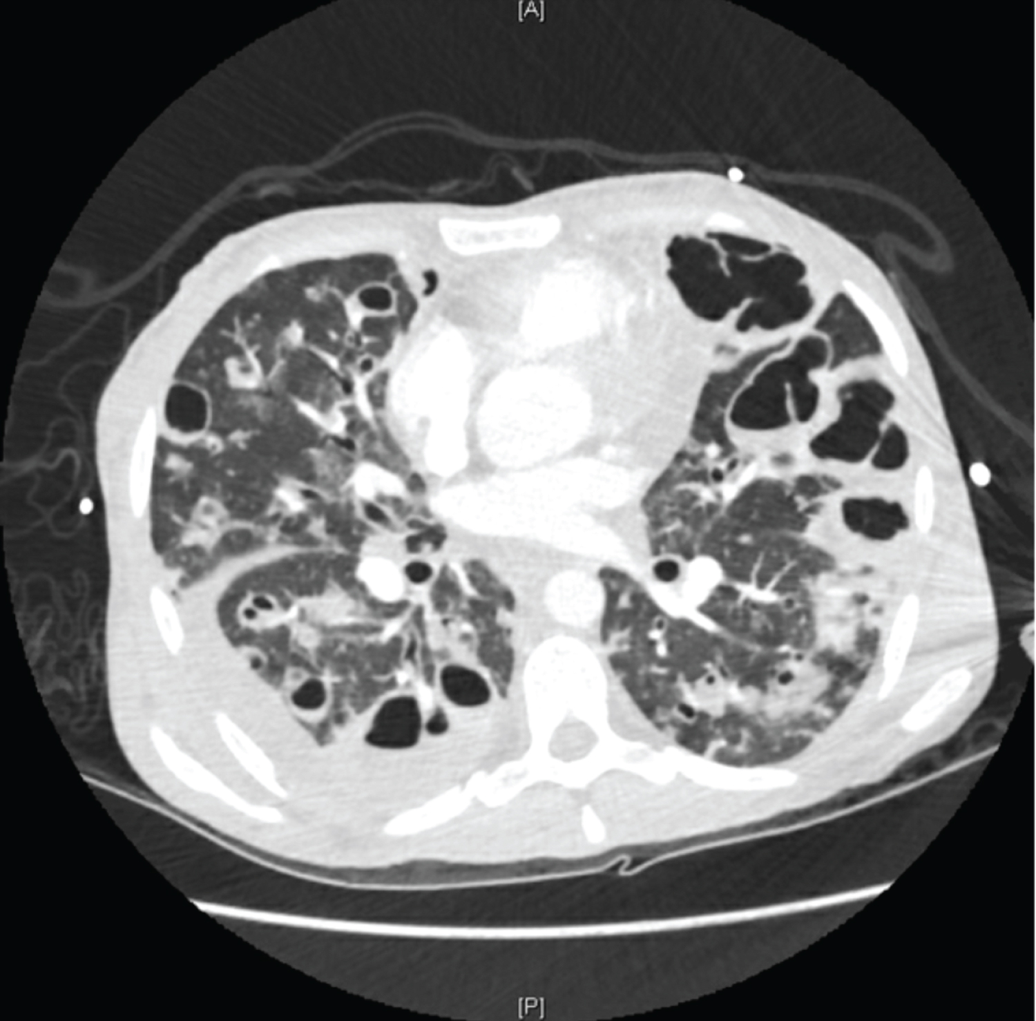 Figure 1: CT scan of the chest at the level of the upper lung lobes.