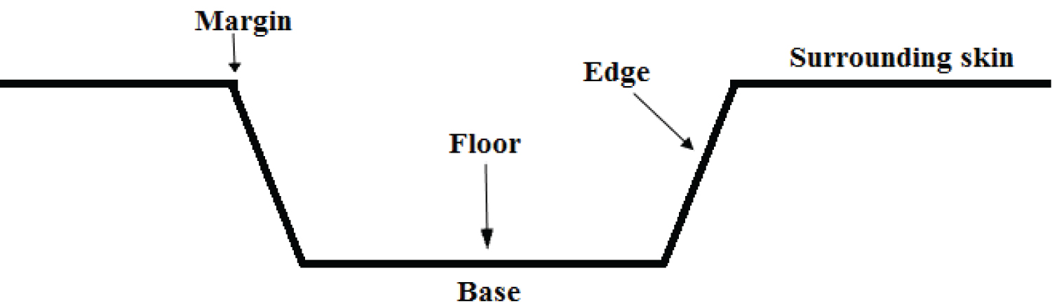 An ulcer is defined as a breach in the continuity of the skin or a mucous membrane with molecular death of the cells due to underlying inflammation. Figure 1 depicts the different parts of an ulcer. The article describes four different types of ulcers of the lower limb commonly encountered in the surgical wards, with their major characteristics and markers of identification.