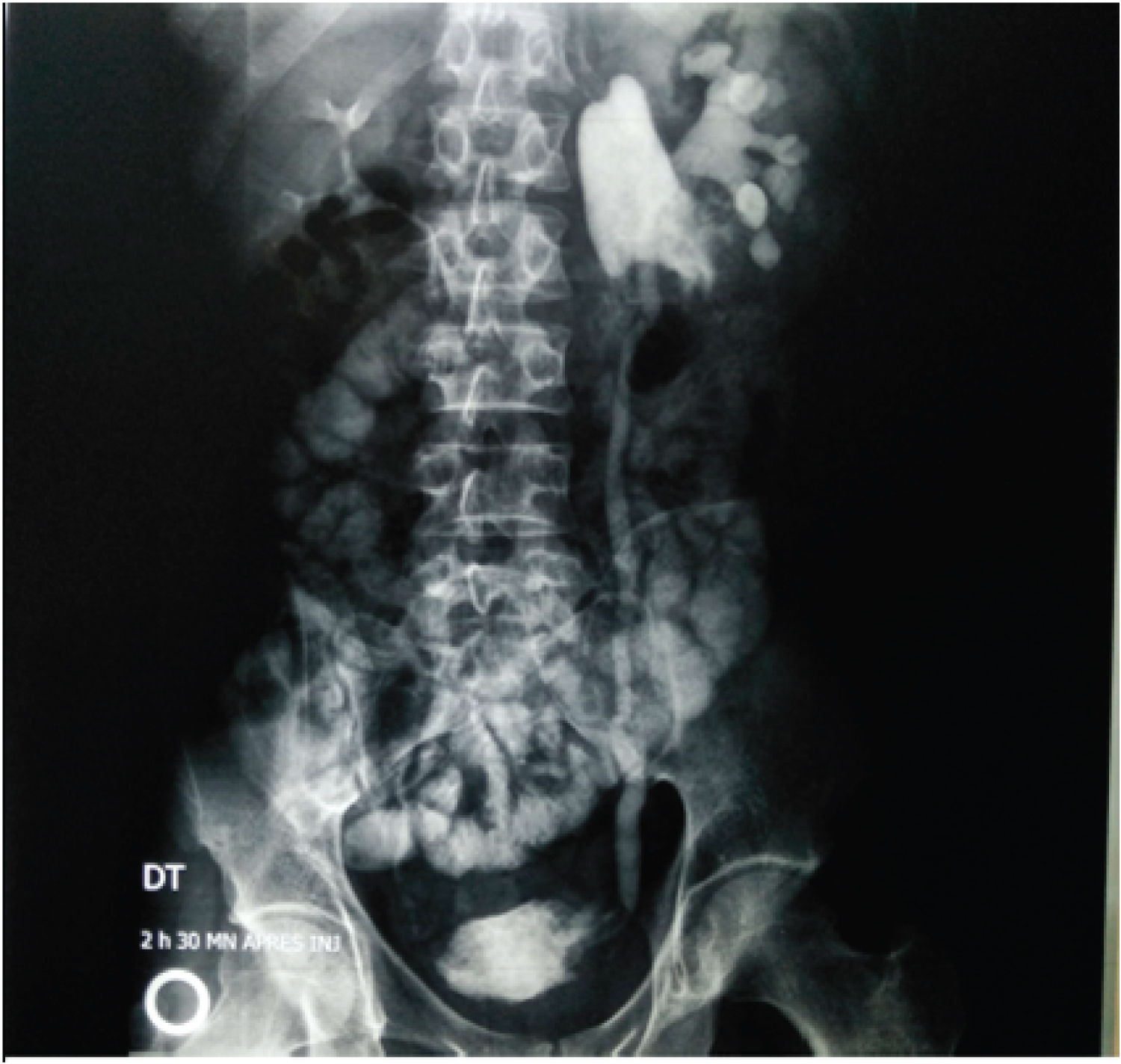 We readmitted the patient because of left lumbar pain and sped up transit.