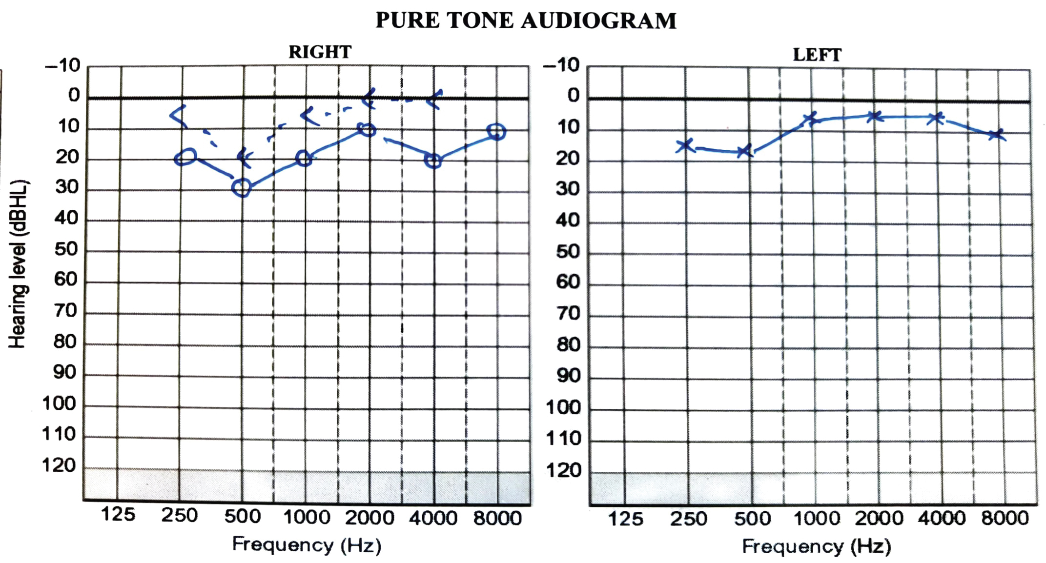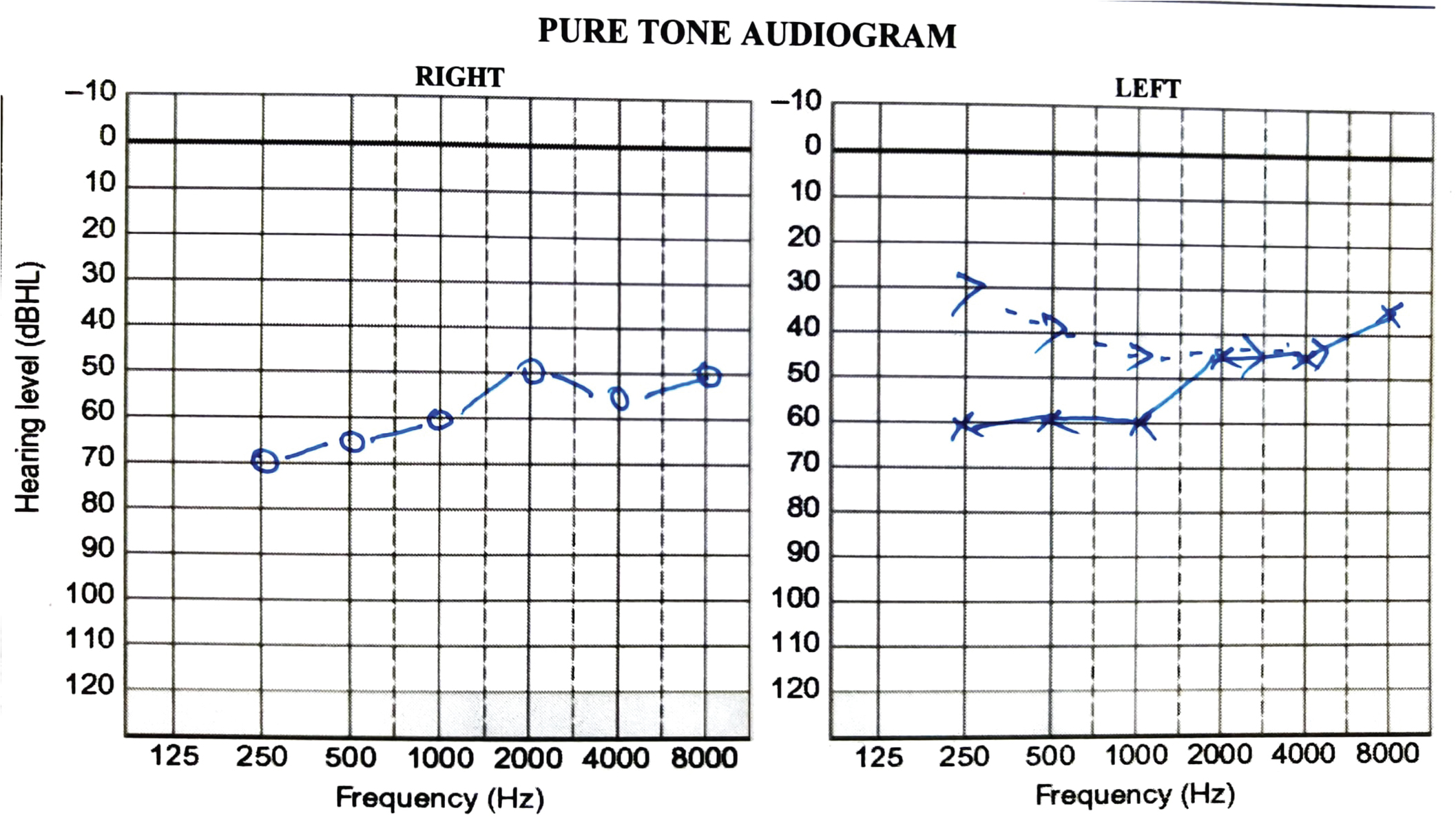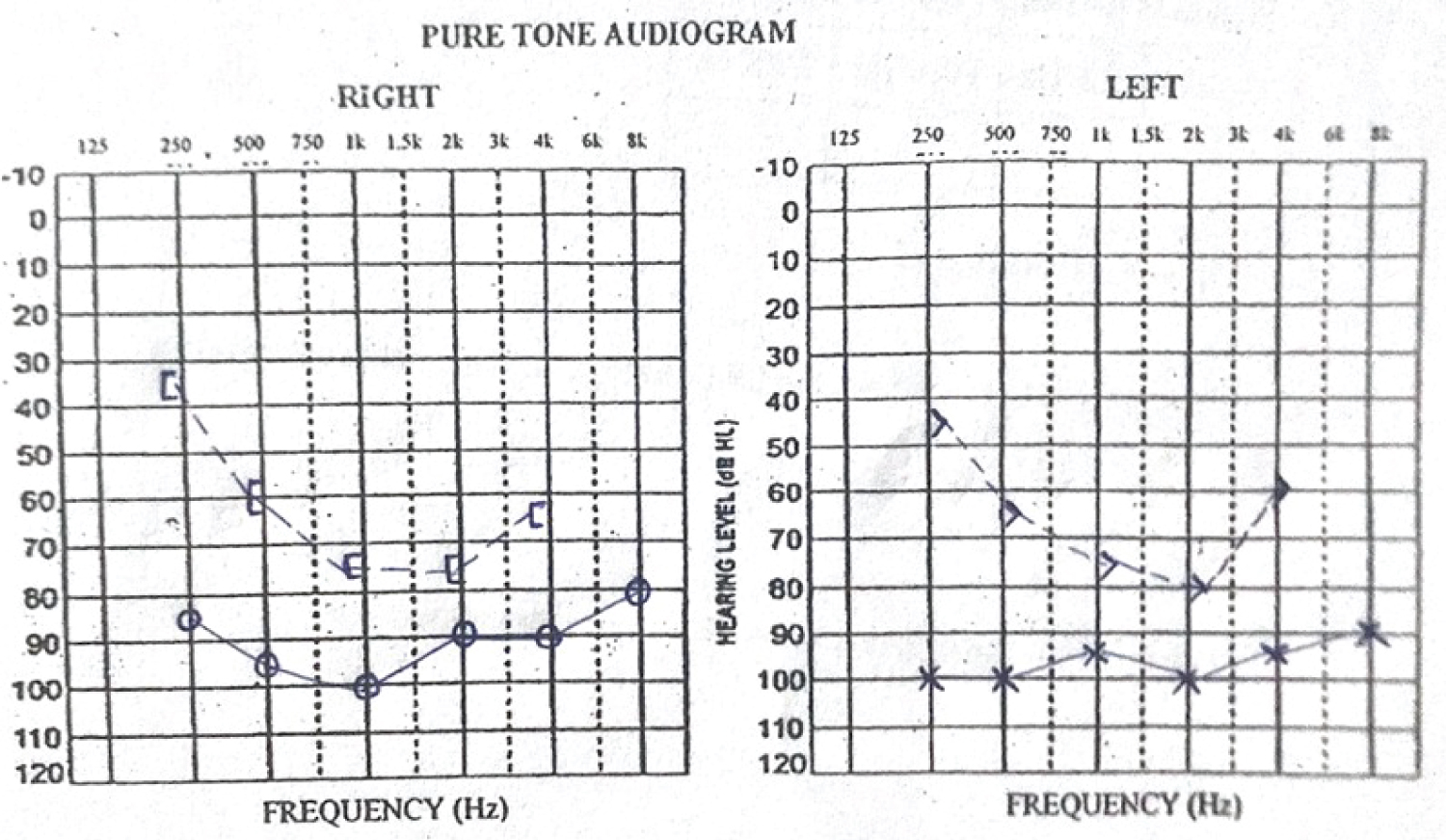 Figure 1: Pure tone audiogram of the client on the first visit.