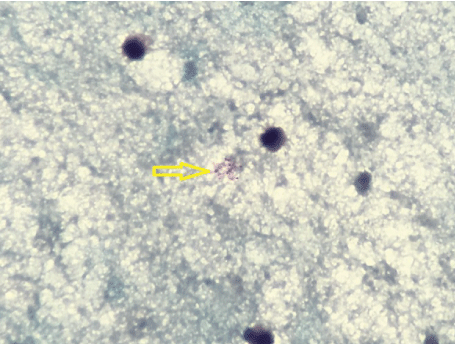 Figure 3: Positive for few Acid Fast Bacilli from the aspirate of the right cervical lymph node mass.