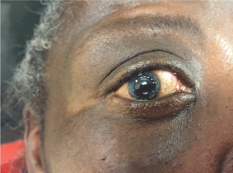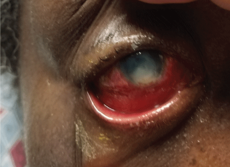 Figure 1: Severe chemosis and hypopyon on presentation. View Figure 1