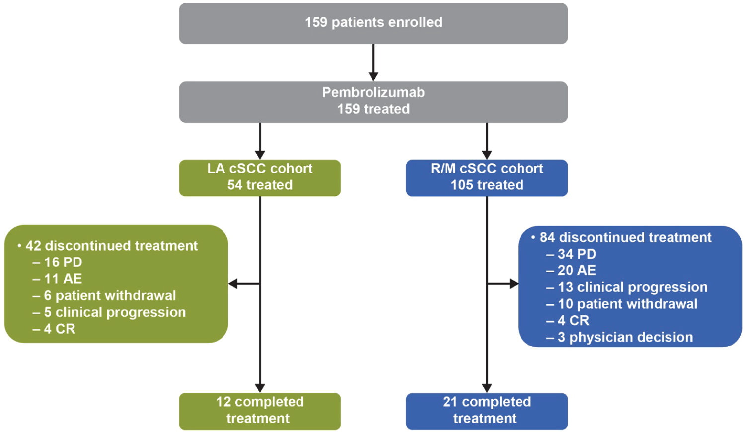 • These findings continue to support the use of pembrolizumab monotherapy in patients with LA or R/McSCC