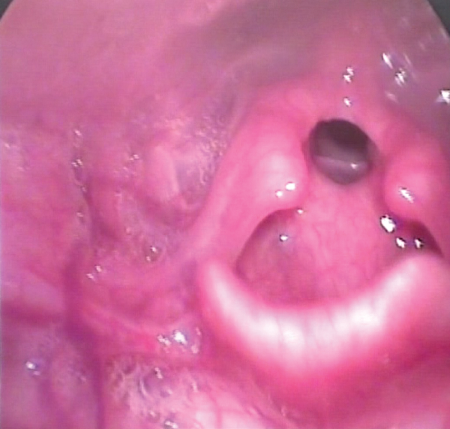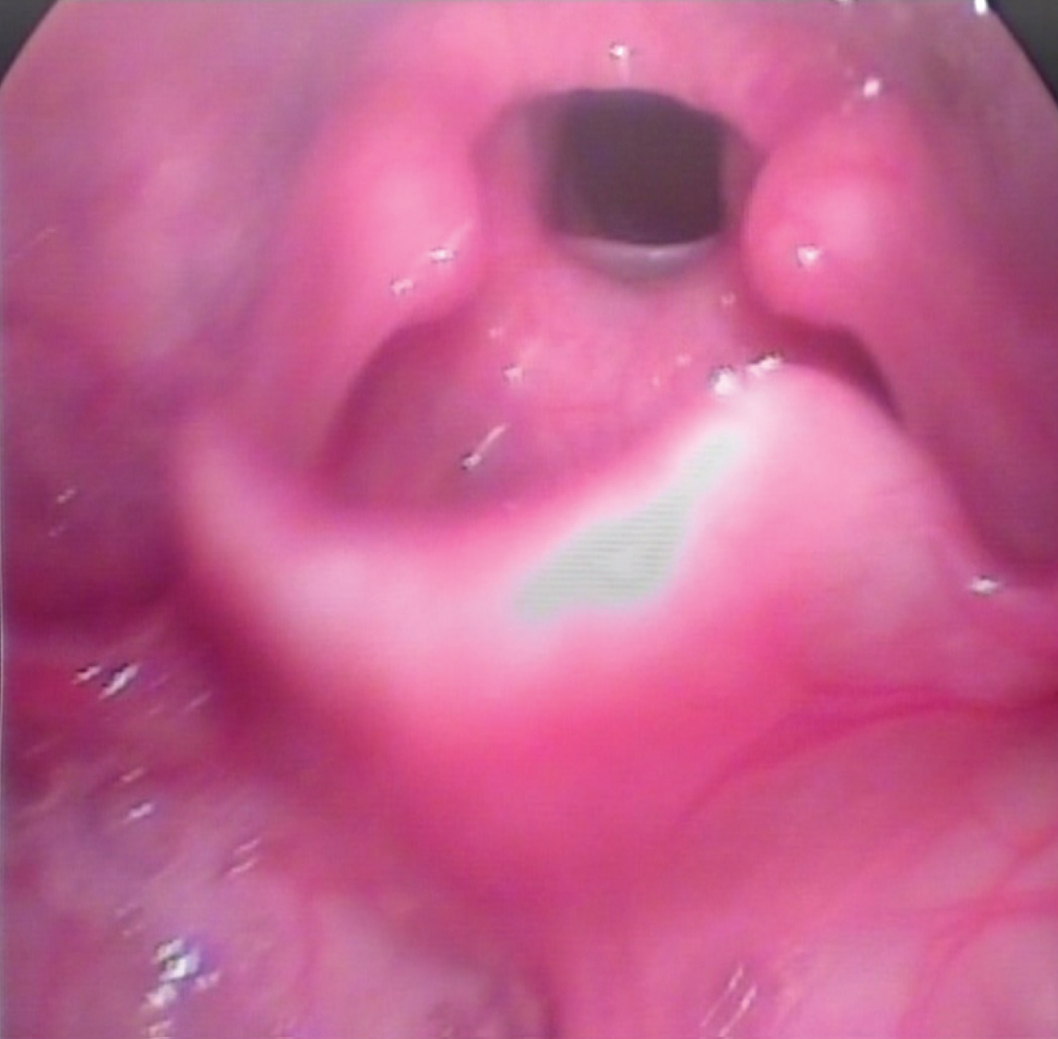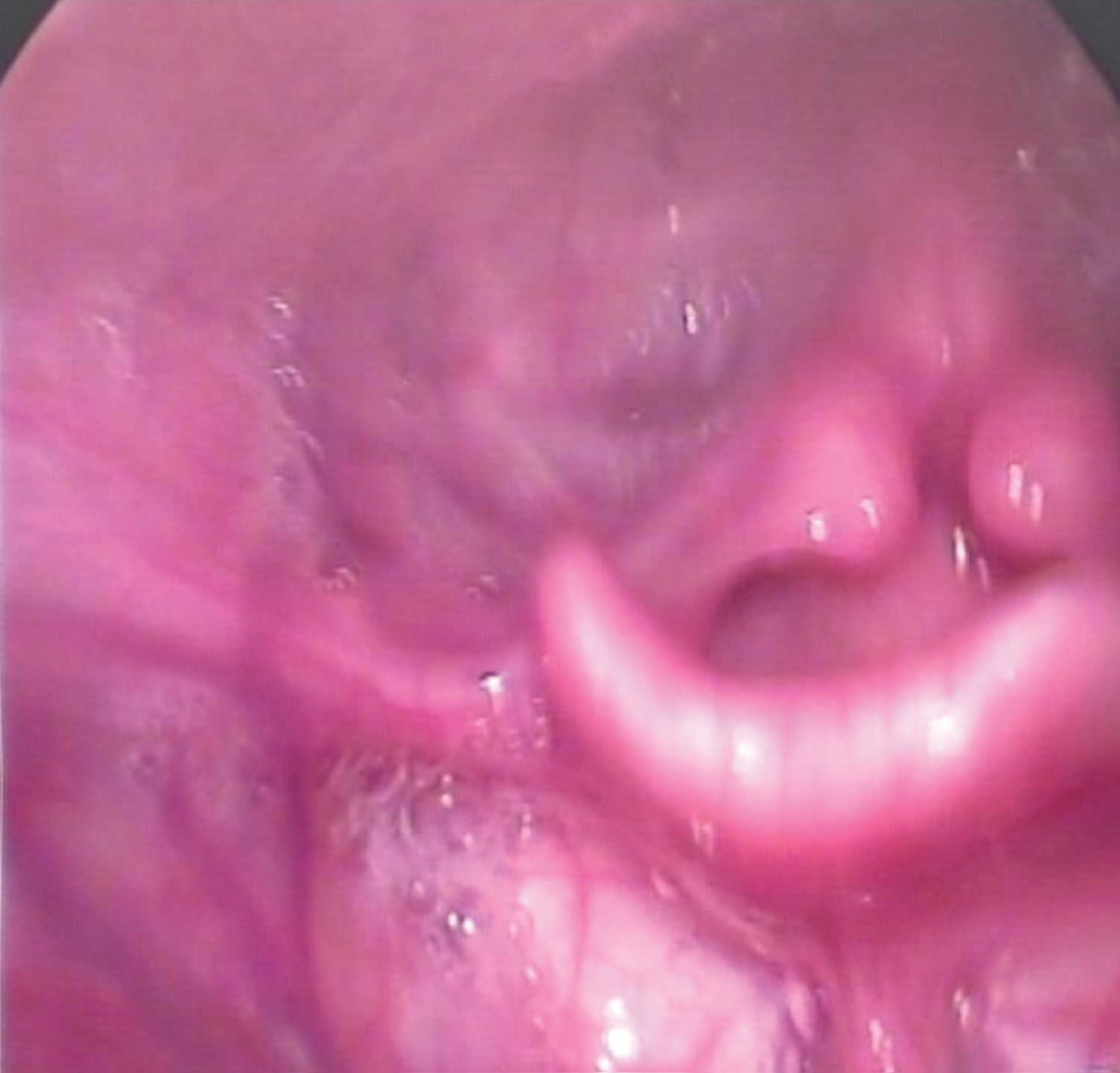 Figure 2: A photo of the patient's larynx by video laryngoscopy during breathing.