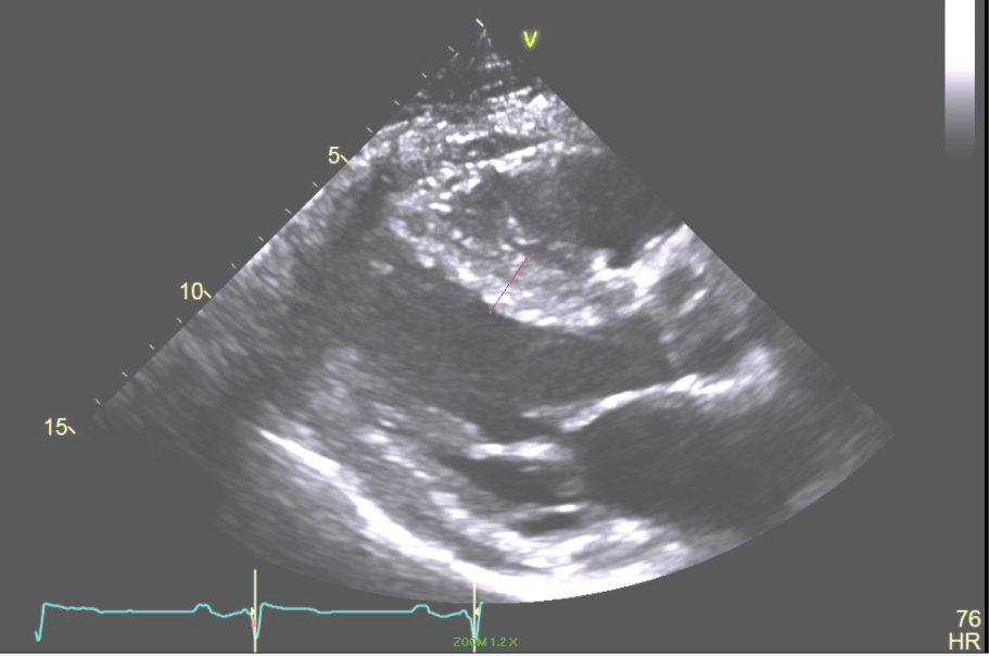 Figure 5: The Parasternal Long axis of the LV revealing a 17 mm septum in a patient with HCM. View Figure 5