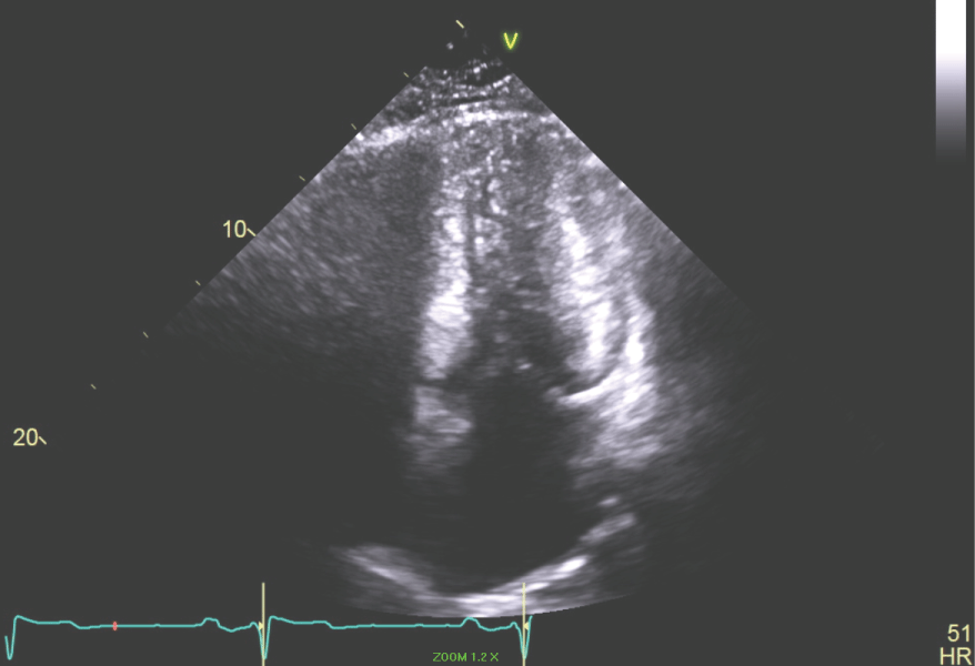 Figure 6: Apical 4 chamber view of the LV showing small LV cavity. View Figure 6