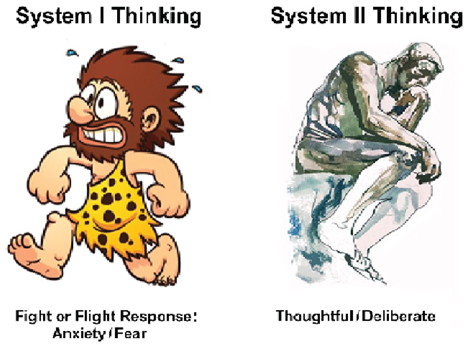 How do people respond to potential health risk? This is an important question that requires an in-depth exploration to help physicians develop strategies for counseling patients when assessing risk of adverse cardiovascular events. Social science describes the human mind as having two cognitive systems, System I and System II. System I is the automatic system, while System II is more deliberative and reflective. System I response occur fast. It is emotional and intuitive, responding on automatic pilot. It is driven by habits and is often referred to as "amygdala hijacking". It has a lot of trouble with complexity. System II is deliberative and calculating. It thinks and considers probability calculations carefully and slowly-reflecting due diligence. It is a planner rather than a doer and can handle complexity. System II recognizes we need to make trade-offs, and that we will, inevitably, be making decisions about the extent to employ various resources to understand and hopefully reduce risks, especially mortality risks (Figure 2).
