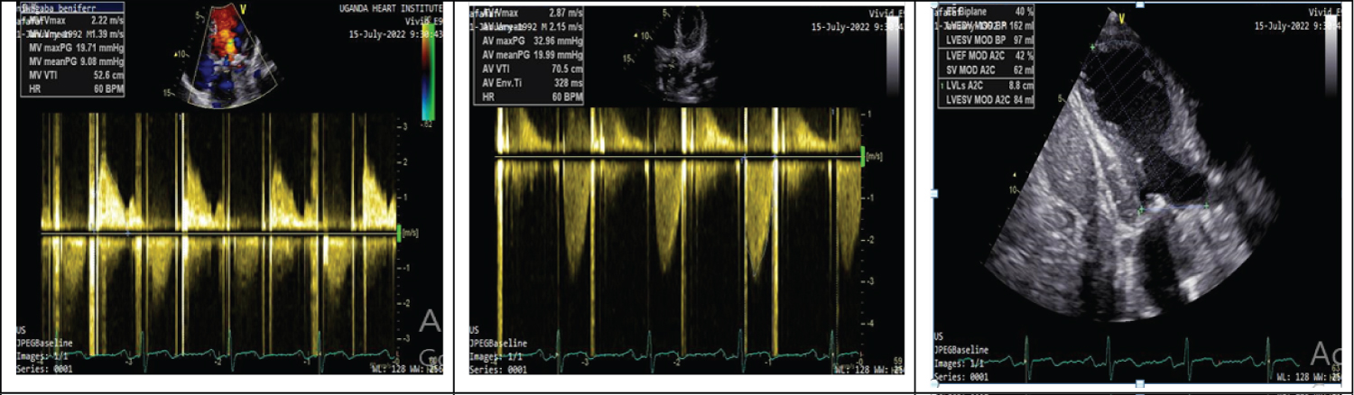 Figure 2: a) Mitral valve PGs; b) Aortic valve PGs; c) Mod LV systolic dysfunction.