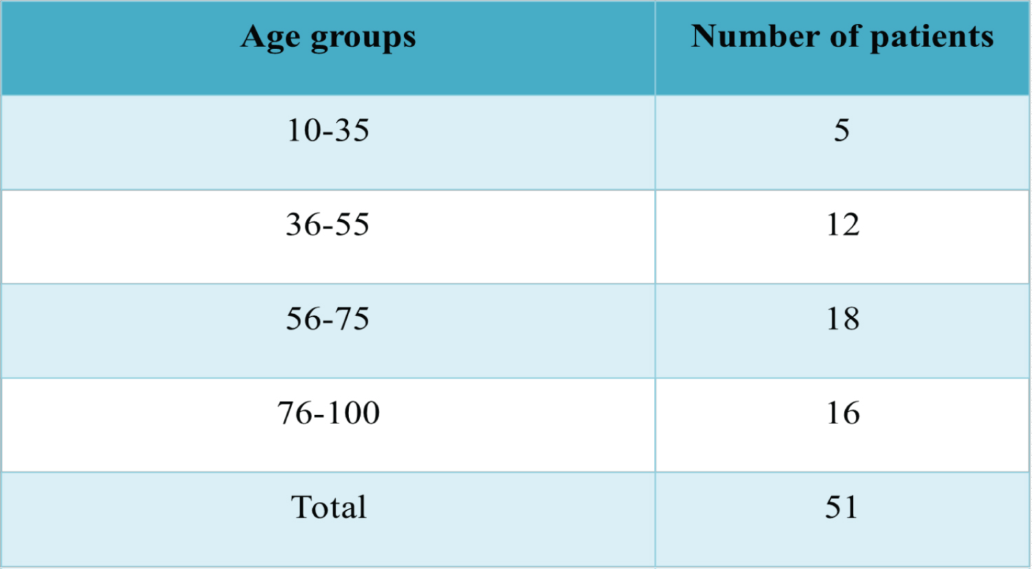 Table 2: Age groups of patients. View Table 2