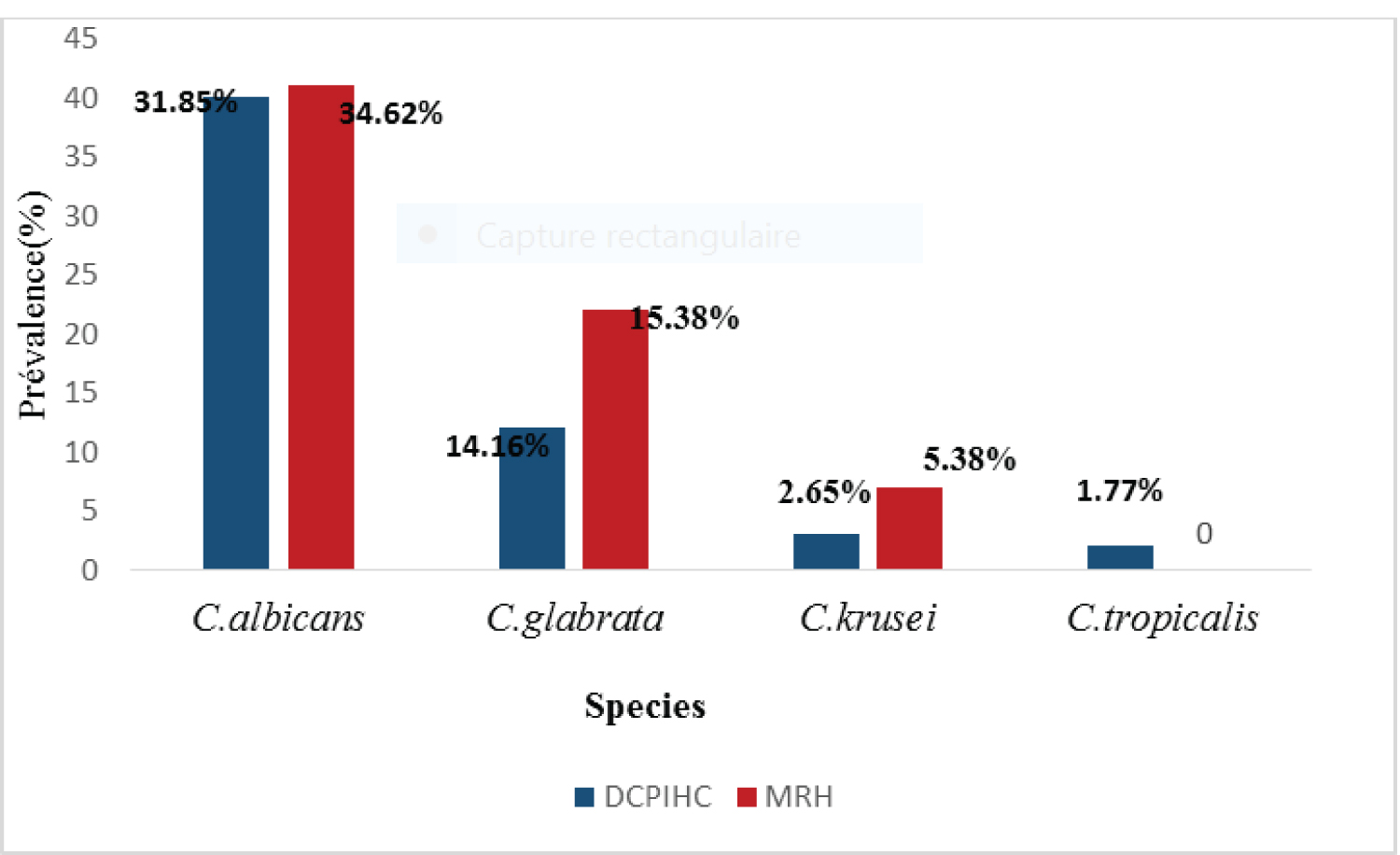 Figure 2: Prevalence of Candida species isolated according to health centre.