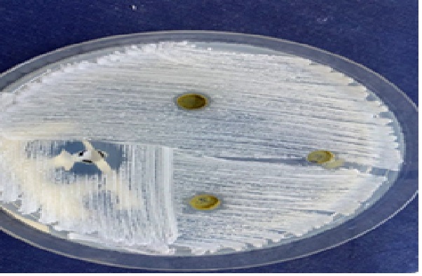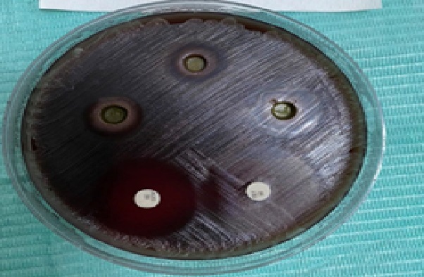 Antimicrobial assay of extracts against periodontopathogens: The antibacterial assay of the selected isolates was carried out by agar wells diffusion method mentioned by [11,12]. The antimicrobial assay was came out by using three different concentrations 25 mg/ml, 50 mg/ml, and 75 mg/ml of ethanolic extracts of S. Officials’s leaves, they were tested against 5 bacterial strains by the agar-well diffusion method. Tetracycline and Augmentin were used as a positive control. After isolation and identification of many bacterial species, five bacterial isolates were recruited for further study, which are; Rothia mucilaginosa , streptococcus acidominimus, Streptococcus gallolyticus, Arcanobacterium heamolyticum, Gemella morbillorum . A bacterial inoculum were prepared in distilled water and were plated onto blood agar and spread in three directions by sterile swabs. After the bacterial culture was uniformly cultured on surface of Blood agar. The wells with diameter of 6mm were created using a sterile Pasteur pipette; three wells in each blood agar plate were done. Then, 25 μl each extract concentrations were poured into each well. The diameter of growth inhibition zone was measured after 18-24 hours of incubation at 37°C. Each experiment was repeated five times for each bacterial strain. Mean diameter of inhibition zone of the five replicates was recorded.