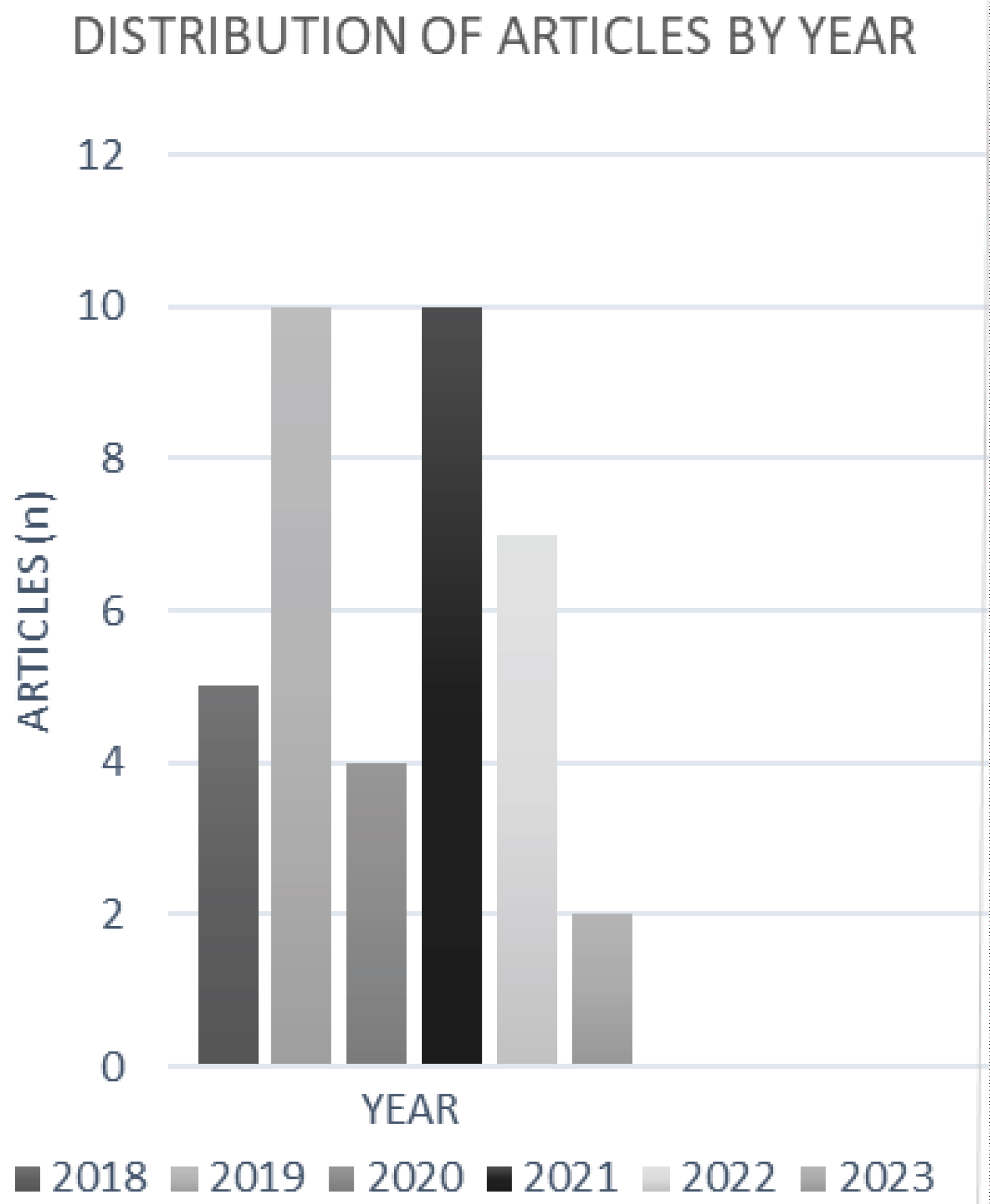 Table 2: Distribution of articles initially gathered and after analysis based on inclusion and exclusion criteria in the databases (period between 2018 and 2023). View Table 2
