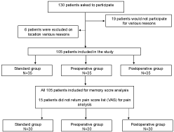 For the analysis of the memory function, 105 patients were included and for the pain analysis 90 patients because 15 patients did not return the VAS score lists.