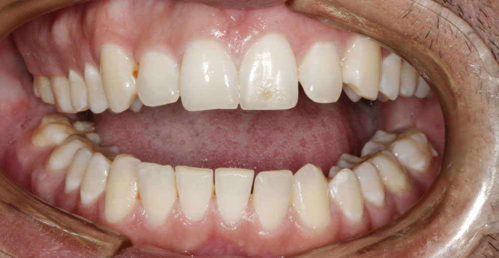 Figure 9: Intraoral photography after the second surgical procedure, which reveals the limitation of mouth opening and occlusal dystopia.