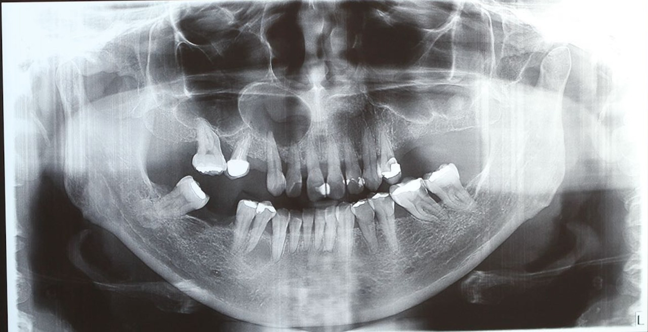 A 54-year-old female patient, without complaints, denied allergies and comorbidities, was referred by the dentist due to a wide maxillary periapical lesion, found in a routine imaging exam. Patient report not have any signs or symptoms of the injury.