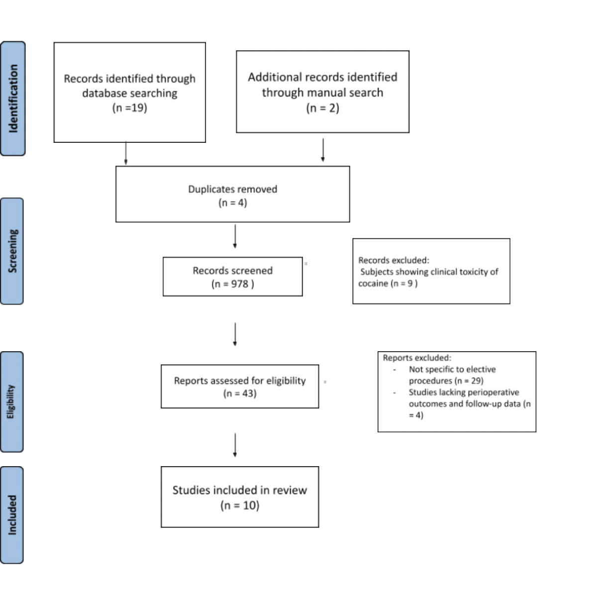 • Studies evaluating perioperative outcomes based on the timing of cocaine use