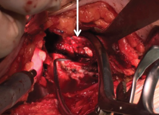 Figure 2: Intraoperative image: exposure of the quadrilateral plate (star) and obturator nerve (arrow).  View Figure 2