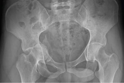 Figure 5: Transverse acetabular fracture in a 24-years-old patient before surgery.  View Figure 5