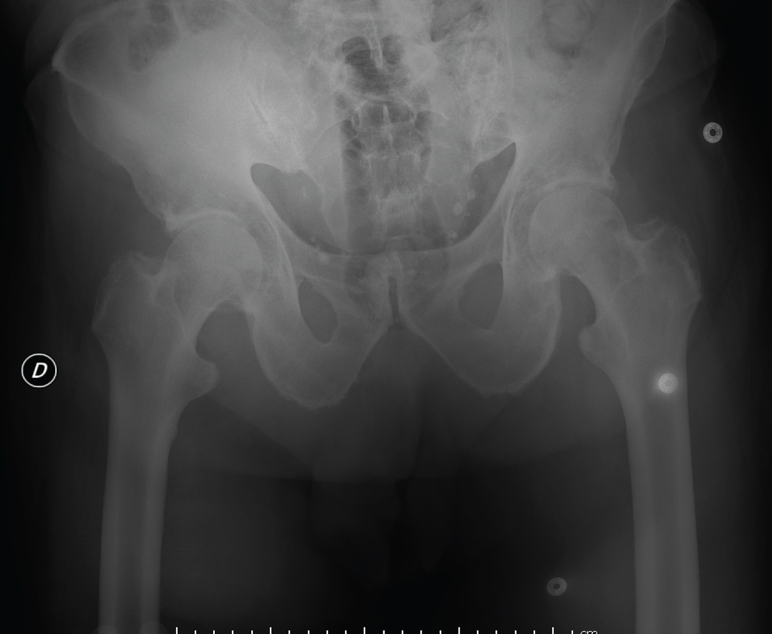 Figure 1: Radiological appearance of bilateral hip dislocation.