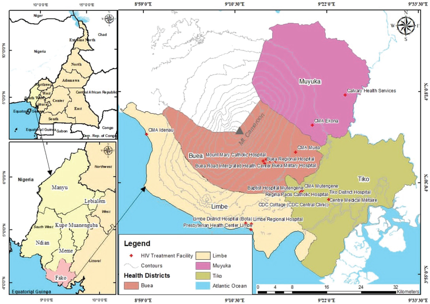 Figure 1: Map of Fako division showing HIV treatment centers.