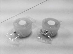 Figure 1: The dried samples of prostate fluid on filter paper disks fixed on the Scotch tape pieces centrally pulled onto a Plexiglas cylindrical frame. View Figure 1