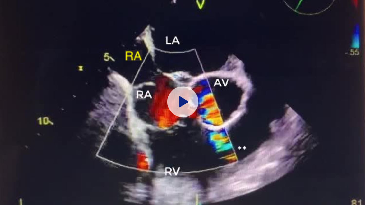 A 36-year-old female with a past medical history of hyperlipidemia, peripheral scleroderma (morphea), renal cell carcinoma status post partial nephrectomy, childhood Ewing sarcoma status post chemotherapy, and recent cardioembolic stroke requiring intracranial thrombectomy by interventional radiology presented for cardiac surgery. The patient displayed no residual neurological deficits after cerebral thrombectomy. However, her stroke workup and evaluation were notable for a transesophageal echocardiogram (TEE) revealing severe non-rheumatic mitral regurgitation, mild to moderate non-rheumatic aortic incompetence, mild tricuspid regurgitation, patent foramen ovale, and right atrial cor triatriatum. The patient had a preserved left ventricular ejection fraction of 65% and no mass or thrombus were identified within the left or right atrium. Given aortic and mitral involvement, and the patient's history of scleroderma, she was evaluated by a rheumatologist who determined that the patient's scleroderma was isolated to the periphery without evidence of systemic or cardiovascular involvement. The patient also denied a history of transient ischemic attack, syncope, chest palpitations or diagnosis of atrial fibrillation. Additional workup, including carotid arterial duplex and Holter monitor evaluation were unremarkable. Cardiogenic embolism was suspected, and the patient presented for minimally invasive mitral valve repair, resection of right atrial membrane, closure of the PFO, and ligation of the left atrial appendage, which proceeded uneventfully. TEE imaging (Figure 1, Figure 2 and Figure 3) were obtained by the patient's anesthesia providers following the induction of anesthesia and prior to surgical correction of her cardiac malformation.