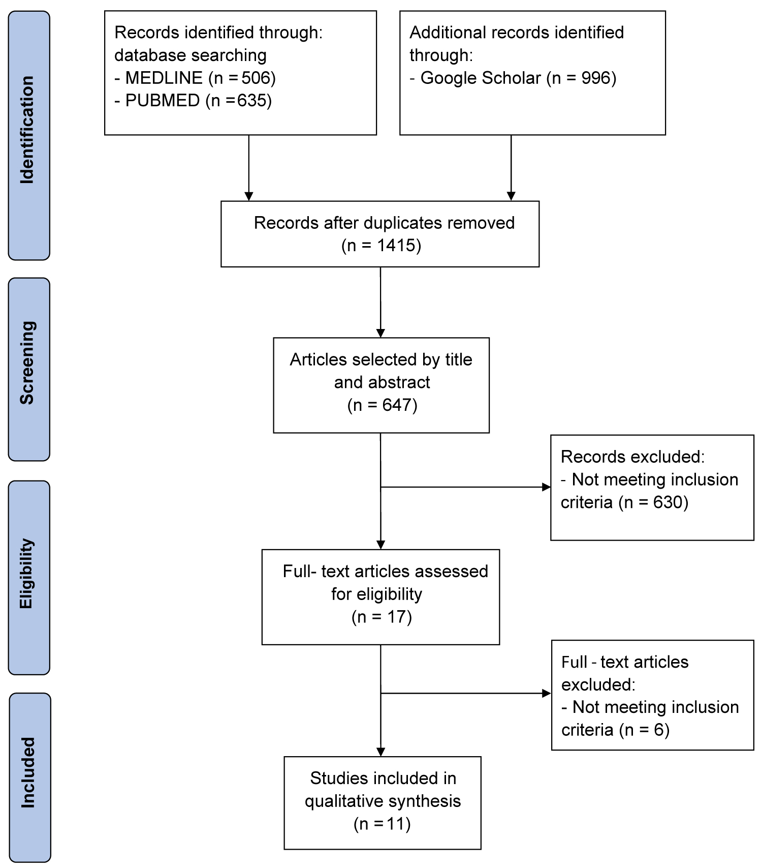 Figure 2: PRISMA flow diagram showing literature search results. Eleven articles were included in the analysis.
