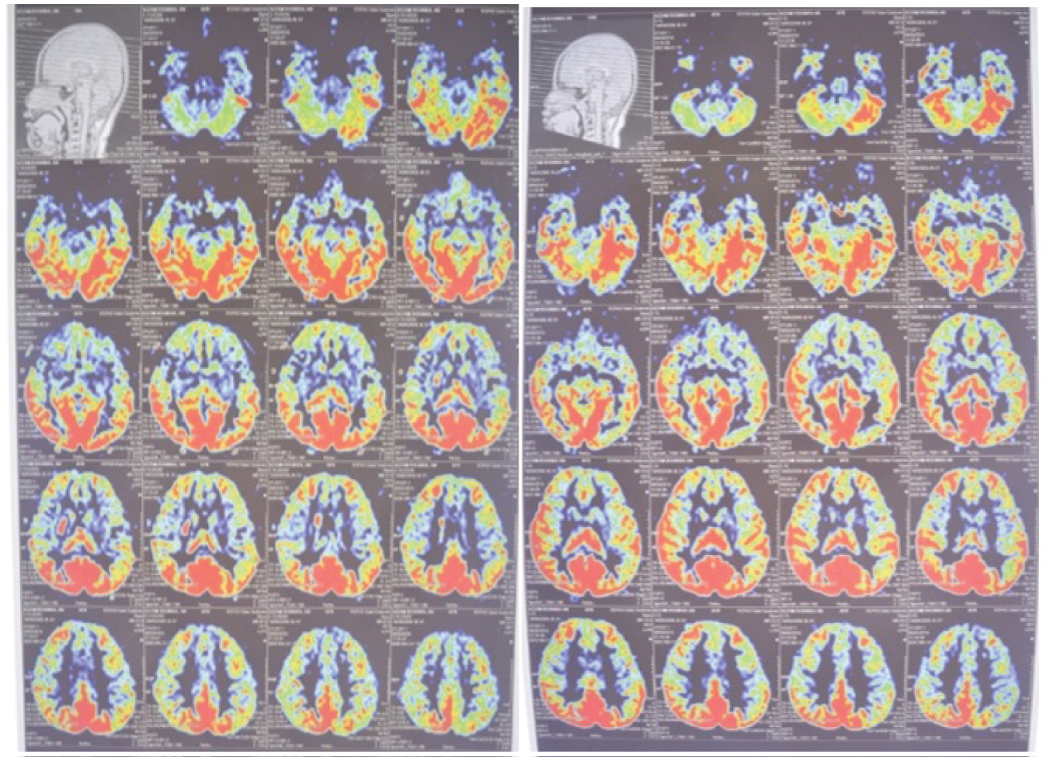 Figure 6: The perfusion image compared brain perfusion before (left) and after (right) IAHF.