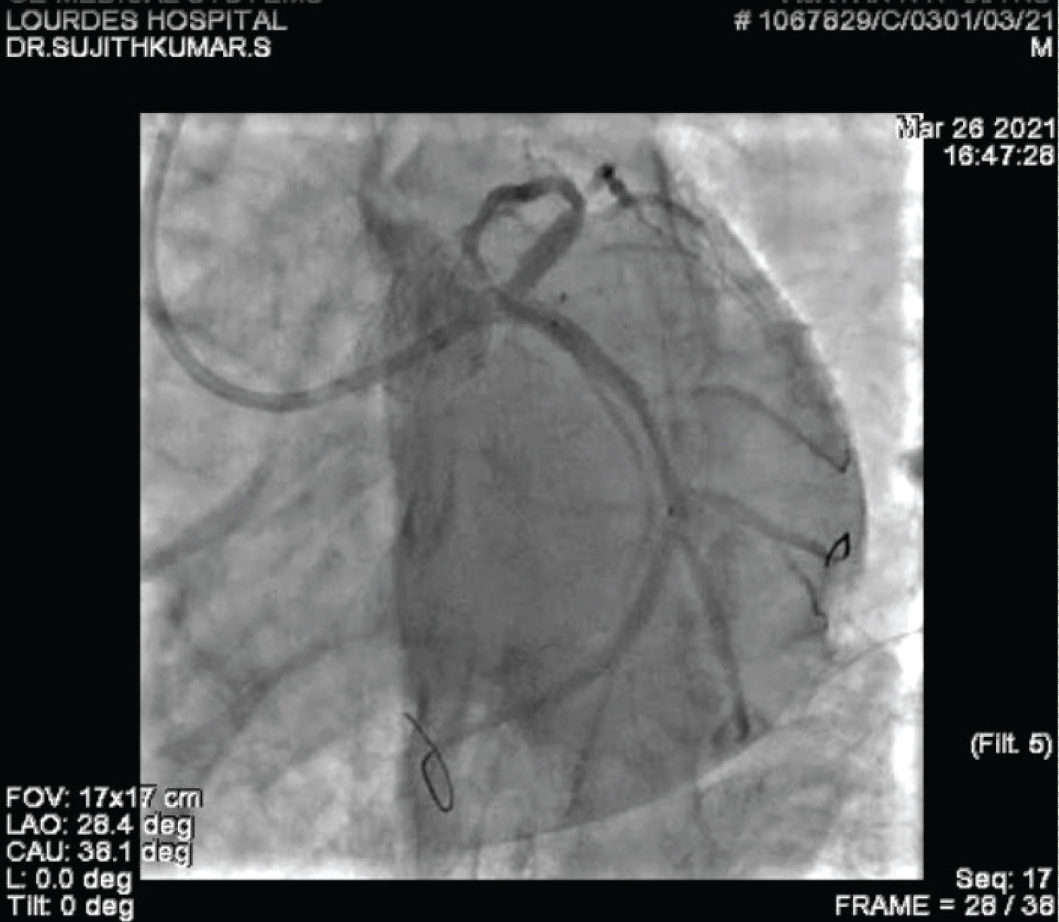 Video 1: Coronary angiogram in LAO caudal view showing stenosis of left circumflex coronary artery and the stent position before deploying.