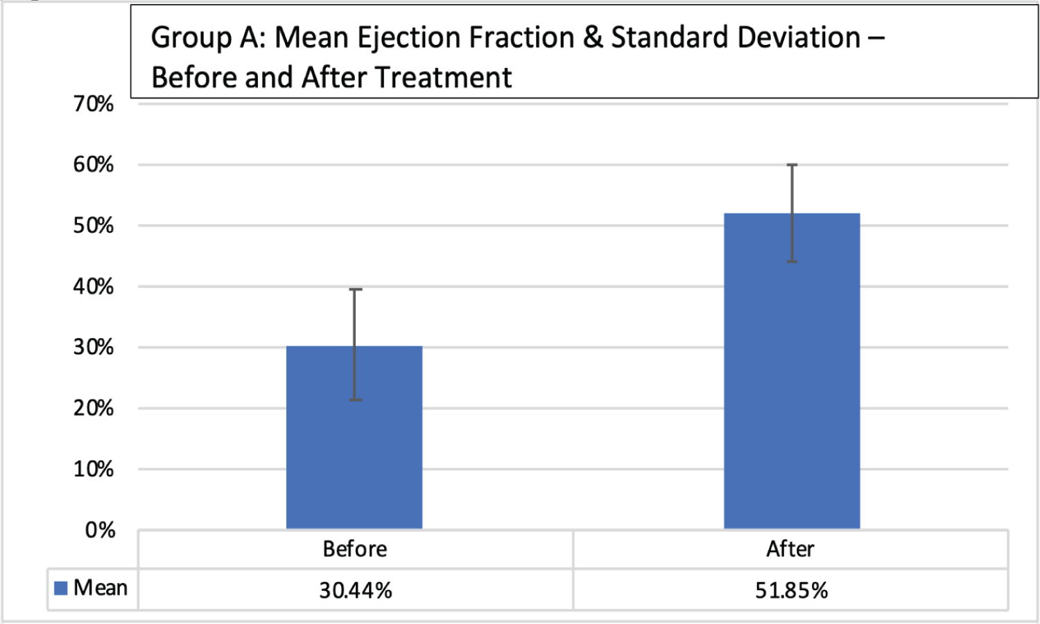 Figure 1: Group A: Mean ejection fraction & standard deviation - before and after treatment.