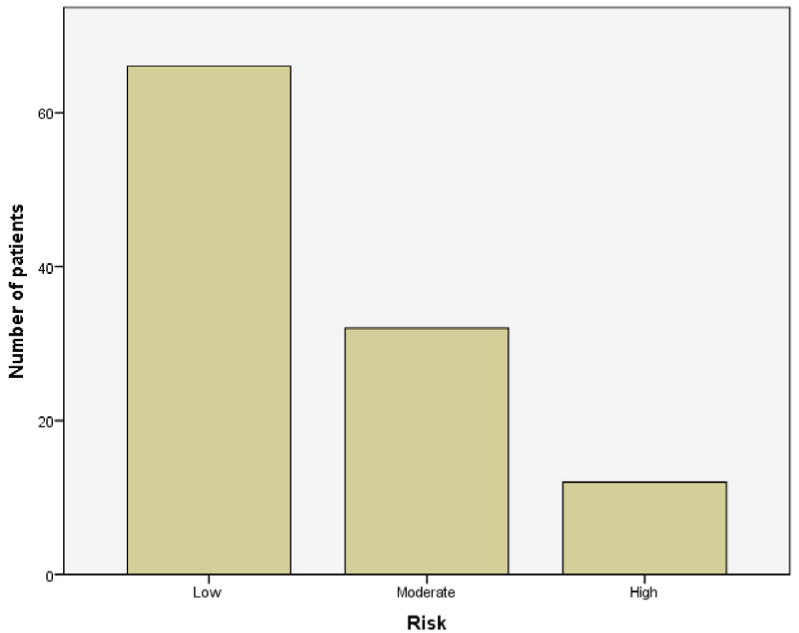 110 patients were included in this study and completed the program. The mean age of the sample was 56.6 ± 8.7 years; Groups of risk are shown in figure 1. Demographic and clinical variables associated with known medical antecedents of the patients described in table 1. The mean duration of the study was 1 year and 6 months.
