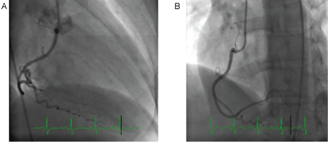 Figure 2: Coronary angiography of A) PDA; B) RCA showing non-obstructive coronary arteries. View Figure 2