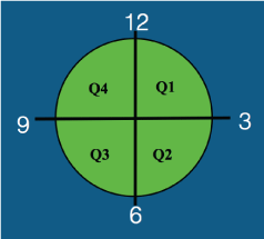 Figure 1: Representation of the pulmonary vein antrum for the analysis. Each vein was divided into quadrants clockwise from 12 o'clock, looking into the vein from the left atrium.