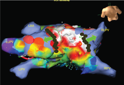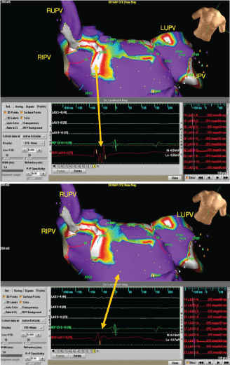 NavX electroanatomical mapping system (St Jude Medical, Minneapolis, MN, USA), useful in the strategy described above, can be implemented to map conduction into the veins and help limit ablation lesions to solely the vein regions that propagate electrical impulses between the body of the left atrium and the PV antrum. It can also identify fractionated atrial electrograms using a CFE Mean Map software, which averages the timing intervals between multiple electrogram components over a user-defined time interval.