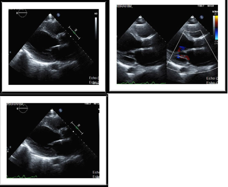 Echocardiogram: moderate dilation of the left ventricle with severely impaired LV systolic function, LVEF = 30%. Akinesia of basal and mid Inferolateral wall, mid-septum, Septo-basal, mid-lateral, mid-inferior and Infero-basal wall. Grade I abnormal diastolic relaxation, left atrial mild dilated. Normal pulmonary arterial pressure (Figures 1). Lower extremities venous Doppler study was unremarkable.