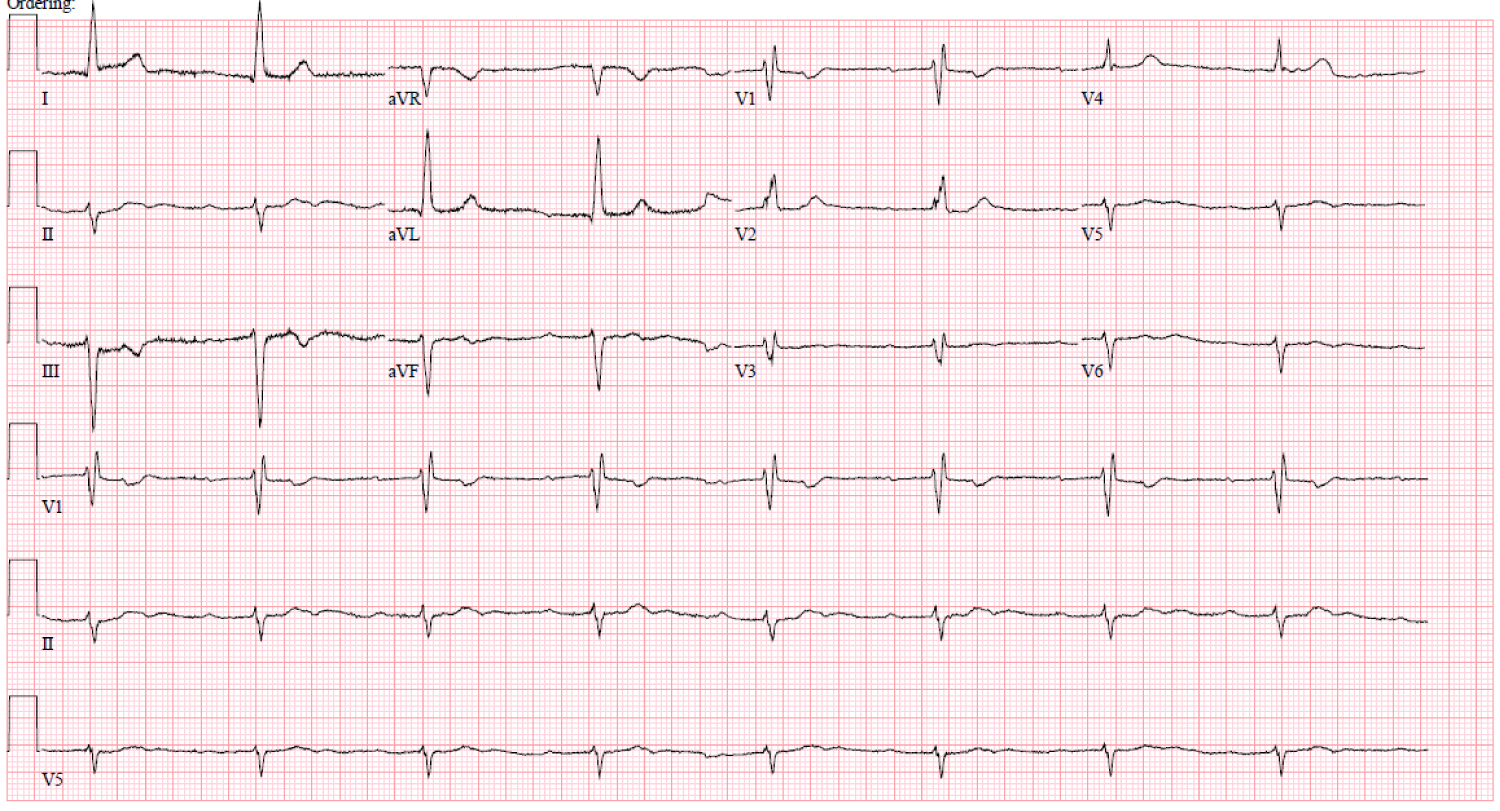 Figure 1: EKG at time of presentation showing 1st degree AV block.