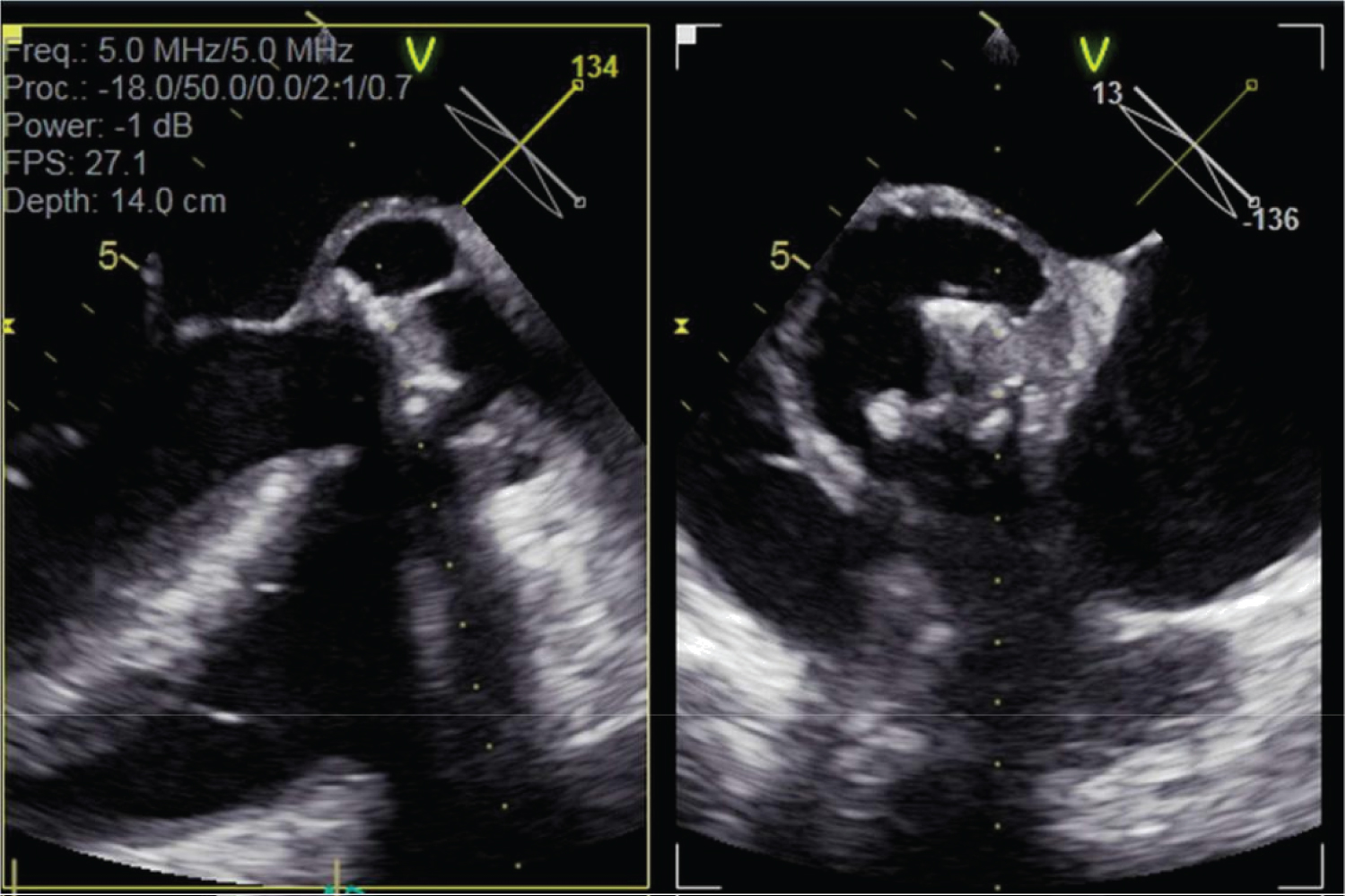 Figure 3: Transoesophageal echocardiogram multiplane images through aortic valve and aortic root.