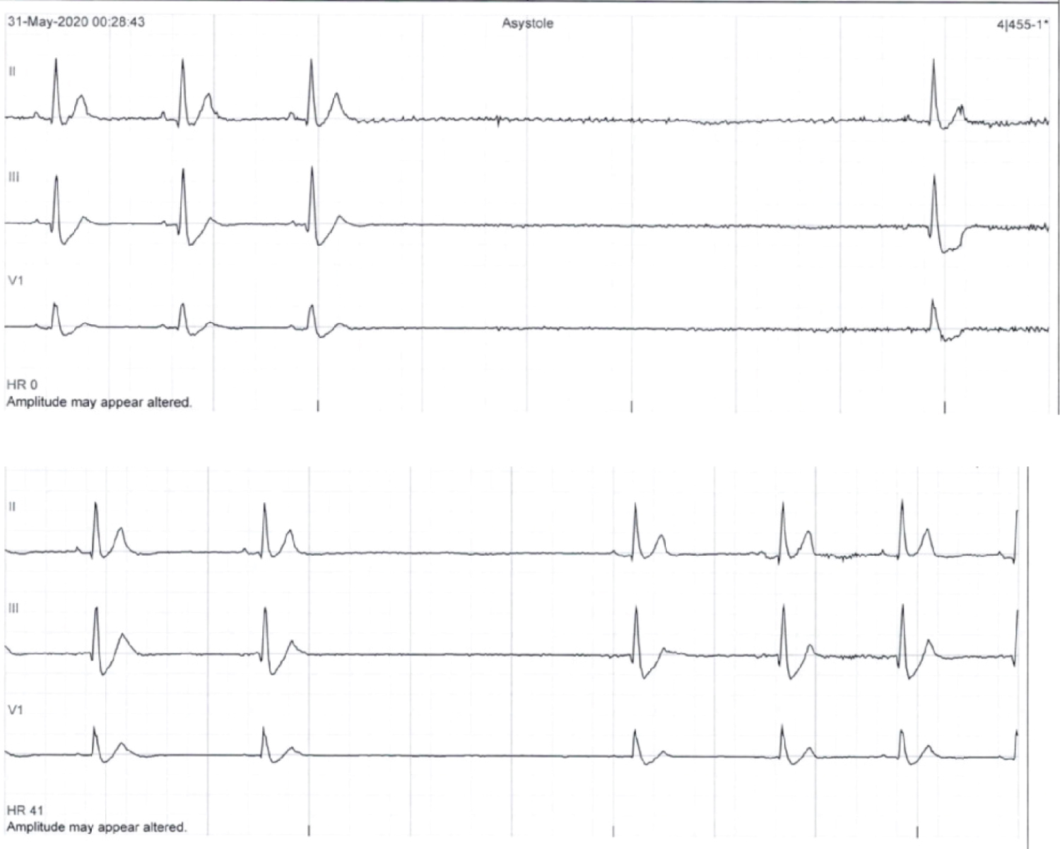 Figure 3B: In-hospital telemonitor demonstrates sinus pauses.