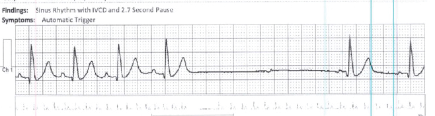 Figure 4: Holter monitor strip demonstrates sinus pause.