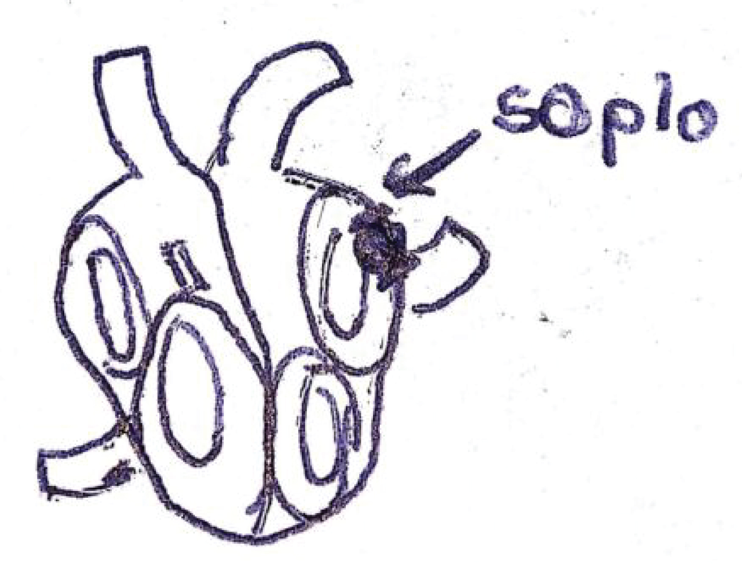 Figure 5: Incorrect drawing made by a 13-year-old girl with pulmonary atresia.
