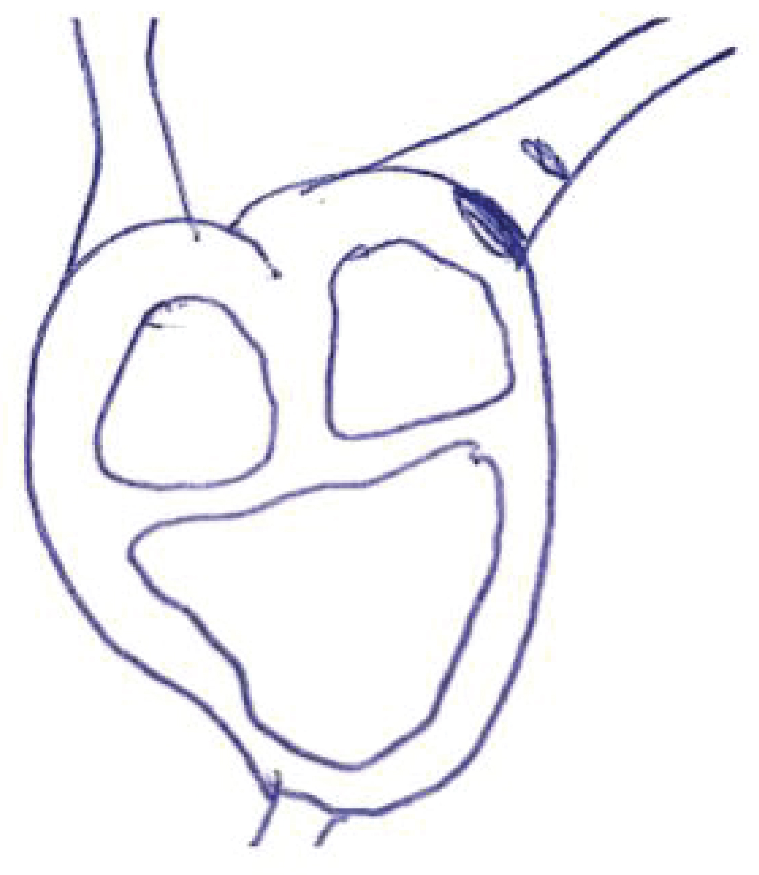 Figure 6: Partially correct drawing made by a 23-year-old patient with a single ventricle.