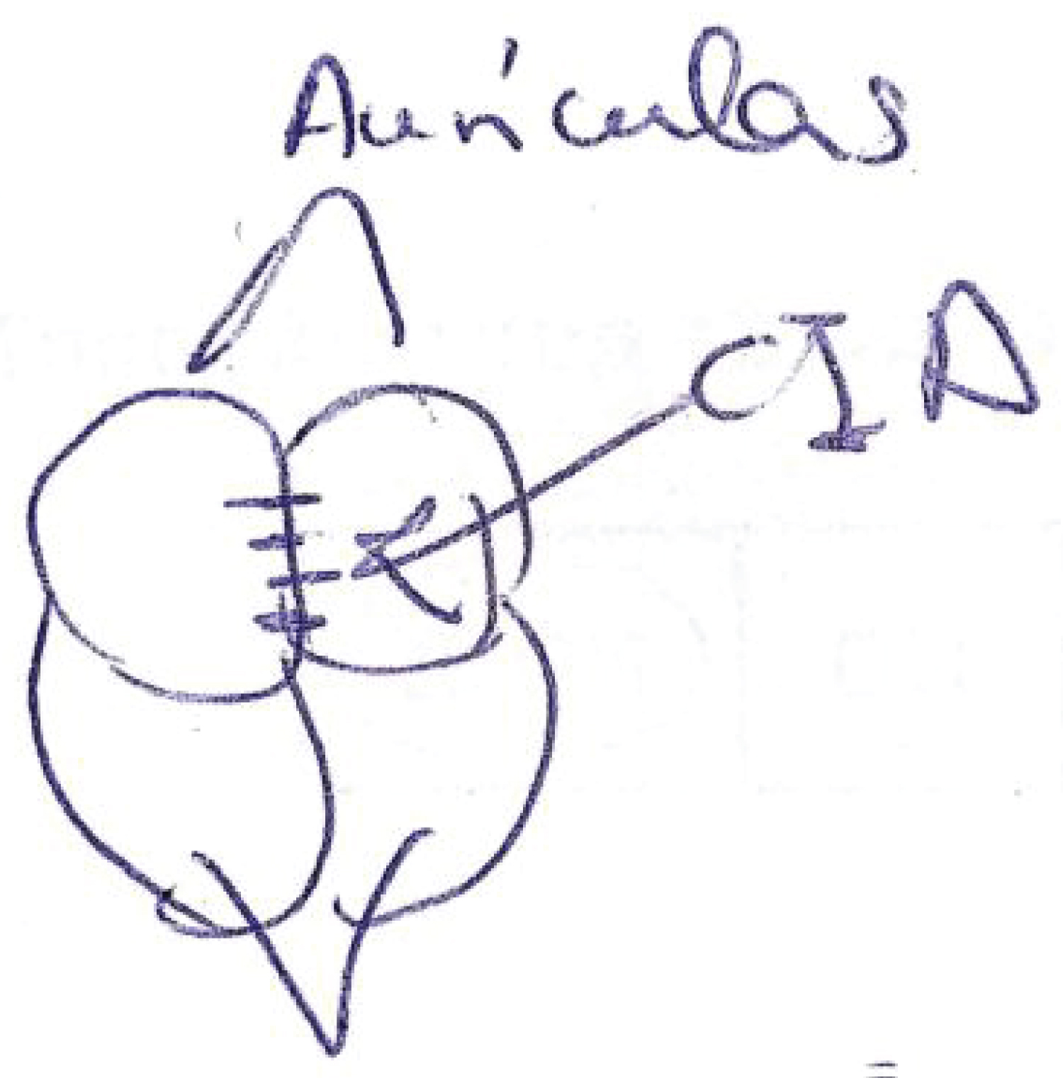 Figure 8: Correct drawing made by a parent of a 13-year-old boy with an atrial septal defect.