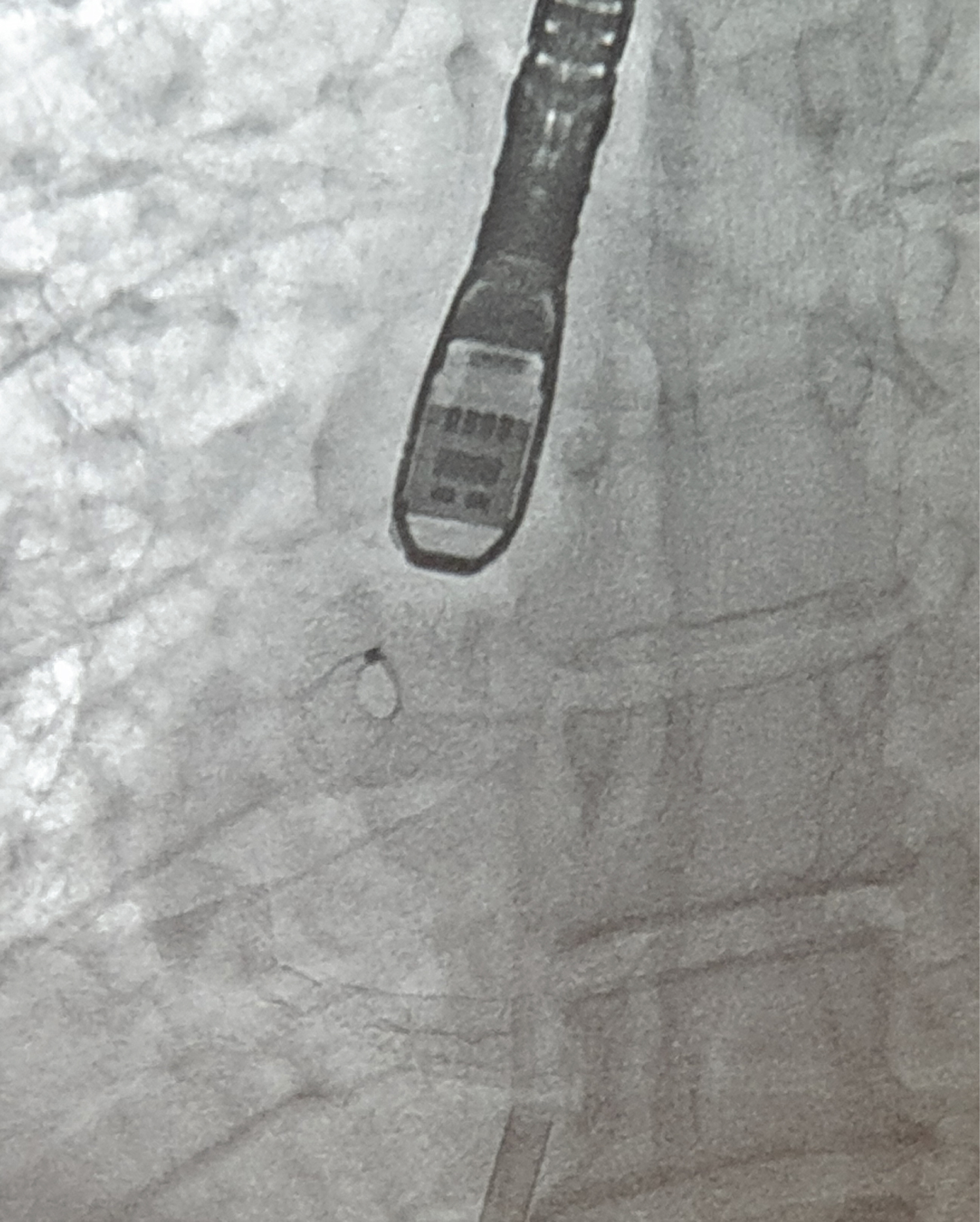 Figure 2: Fluoroscopic view of atrial flow regulator.