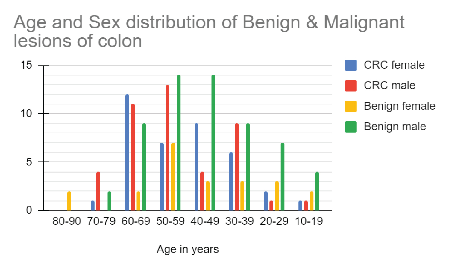 This is a retrospective, analytical study conducted in B.J. Medical College and Civil hospital - a tertiary care hospital in Gujarat, India. Medical reports of 81 patients with Colorectal cancer and 81 patients with intestinal benign conditions (benign intestinal tumors, polyps, inflammatory conditions, etc.) from September 2017 to March 2020 were taken from medical records for this study.