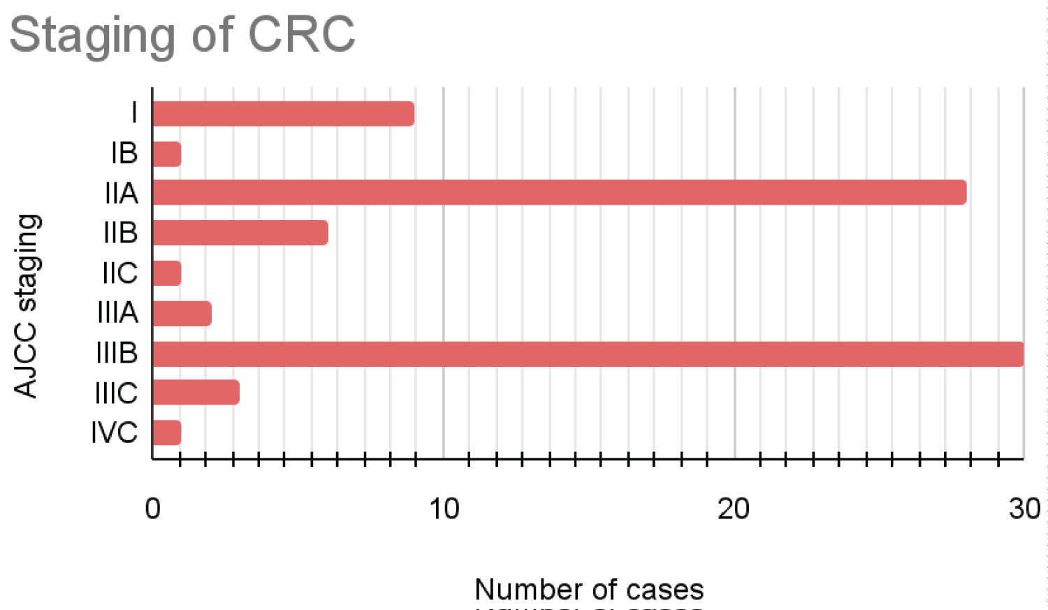 Figure 3: AJCC prognostic stage-wise distribution of CRC cases.