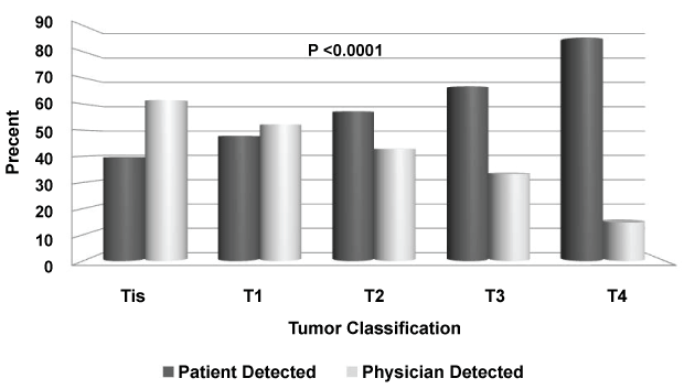 Figure 1: Mode of melanoma detection by T-stage classification at diagnosis. View Figure 1
